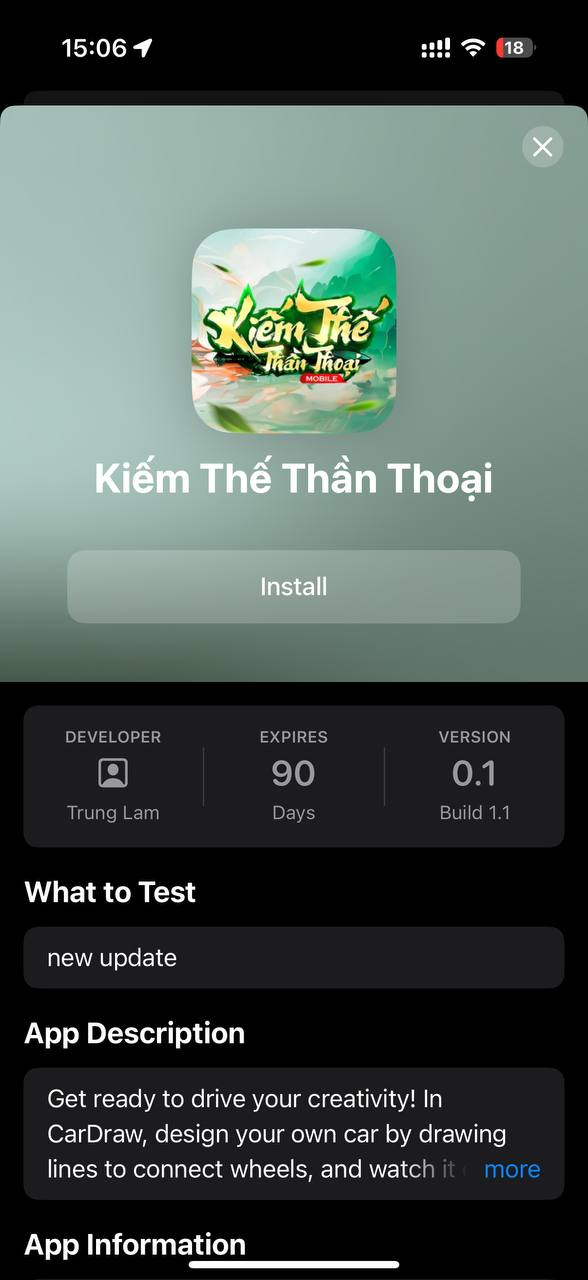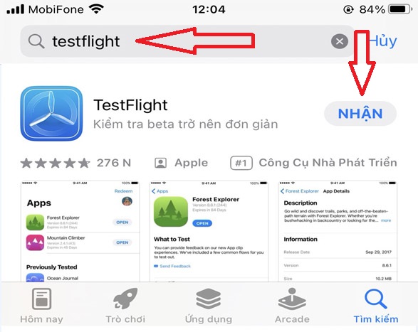 khóa TESTFLIGHT, sau đó tải ứng dụng về điện thoại.